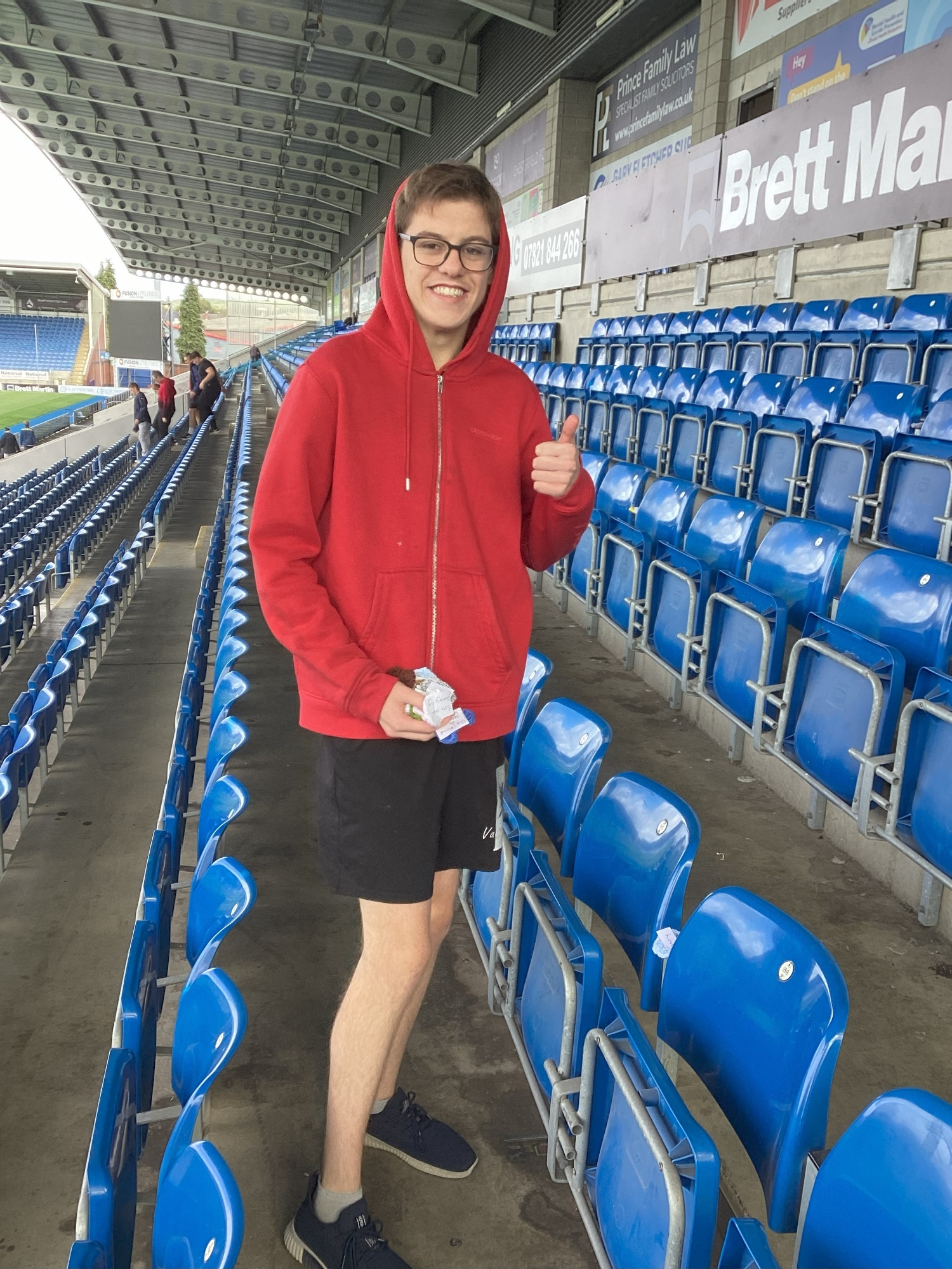 On the final day, students joined staff from Chesterfield Football Club to place the hearts on seats throughout the stadium for fans to discover. While they were working, the team manager approached the group to share how impressed he was with their efforts. As a thank-you, he arranged for the students to meet several players and have a group photo taken.